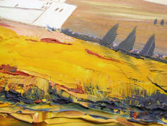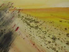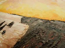 wie man ein Bild beginnt: wir vertiefen uns in das Motiv, stellen uns vor, dort zu sein. Stellen Überlegungen an, wie wir dem Motiv Ausdruckskraft und Stärke geben können. Ein Spiel mit den Farben beginnt. Da wir kreativ sind, können wir nach Wunsch auch eine Sonne hinzuschummeln oder gar Farbbereiche verändern. Zuerst wird mit Stift oder Kohle das Motiv grob angedeutet, damit wir einen Anhaltspunkt haben. |